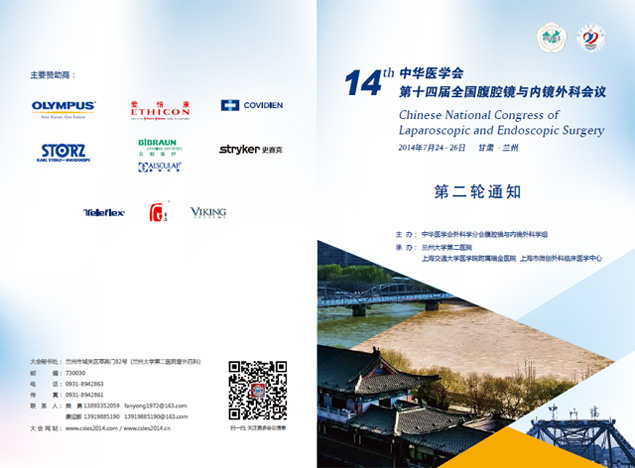 我公司將于2014年7月24日-7月26日作為主要贊助商之一參加在蘭州舉行的中華醫(yī)學(xué)會第14屆全國腹腔鏡與內(nèi)鏡外科會議,屆時我司將在會場設(shè)立特裝展臺。公司熱忱歡迎業(yè)內(nèi)同道到訪參觀并進行技術(shù)交流。