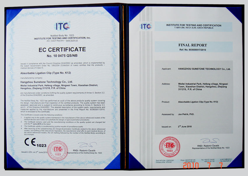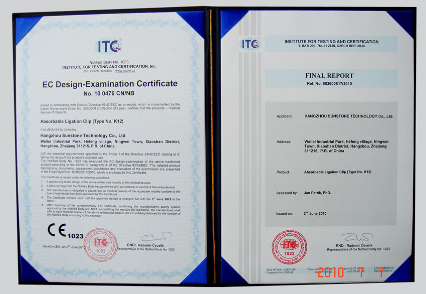 上述證書的獲得,標(biāo)致著我公司產(chǎn)品將順利進(jìn)入全球市場,參與國際競爭。同時(shí)也使我公司產(chǎn)品在日后國內(nèi)醫(yī)療機(jī)構(gòu)醫(yī)用耗材政府招標(biāo)采購活動(dòng)中獲益良多。