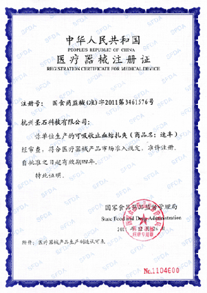 近日,我公司產(chǎn)品可吸收止血結(jié)扎夾(商品名:速豐)正式獲得國(guó)家食品藥品監(jiān)督管理局頒發(fā)的第三類醫(yī)療器械產(chǎn)品注冊(cè)證書(shū),注冊(cè)證號(hào):國(guó)食藥監(jiān)械(準(zhǔn))字2011第3461576號(hào)。(參見(jiàn)國(guó)家藥監(jiān)局網(wǎng)站http://www.sda.gov.cn/WS01/CL0403/68257.html