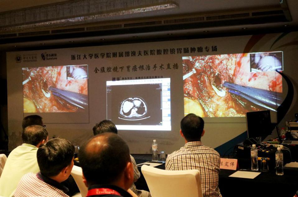 會議期間,我公司通力協(xié)作浙江大學(xué)醫(yī)學(xué)院附屬邵逸夫醫(yī)院舉行腹腔鏡胃腸腫瘤專場會議─全腹腔鏡下胃癌根治手術(shù)直播,來自全國的業(yè)界同道在此面對面交流臨床經(jīng)驗,共同分享新理論、新知識、新技術(shù)、新方法,直播現(xiàn)場一席難求,氣氛熱烈。