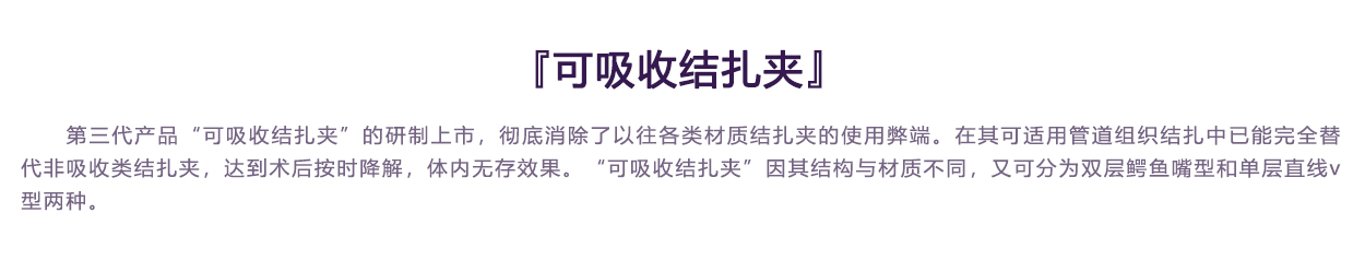 無銳角不易損傷血管或其它組織隱患,降解速度與外層夾一致。