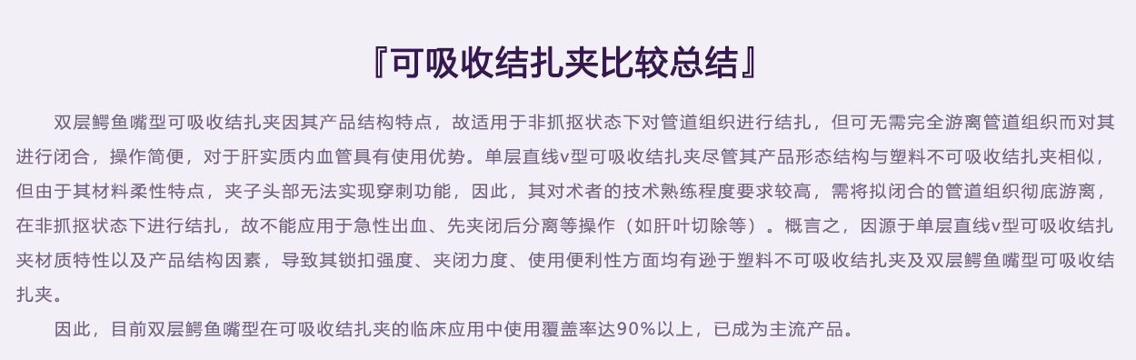 內(nèi)層夾用醫(yī)用染色劑,與進口單層V型可吸收夾顏色一致,提高其可視性。
